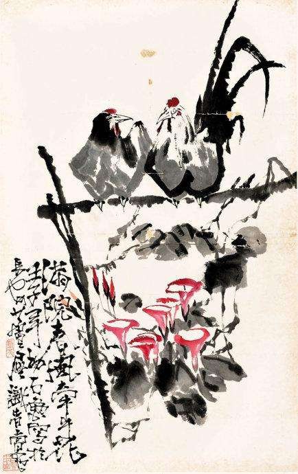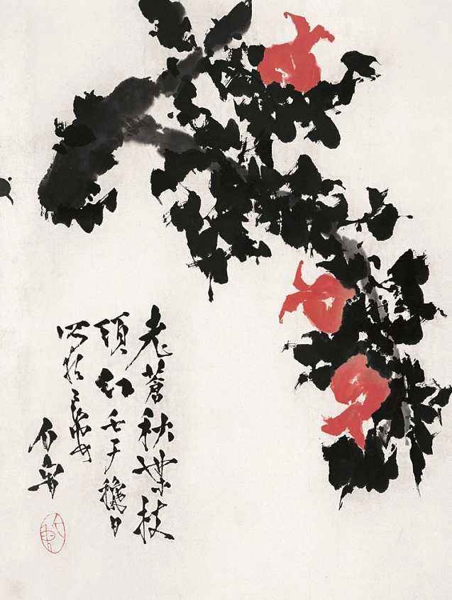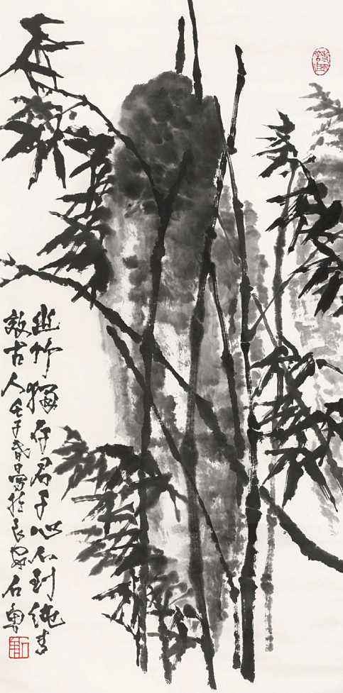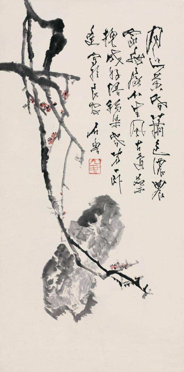 石鲁擅长人物、山水、花鸟。早期画风偏于写实,用笔坚实谨严,多画革命题材;后期画风奇崛劲健,常以华山、荷花为题,笔力纵恣雄豪,后期以花鸟大写意为主,创作了一批极具个性化的诗、书、画、印,具有强烈的主观表现性,以强力提按的用笔和激烈抒情的品格构成了对传统书画的变革,成为书画由传统形态向现代形态转变的艺术家。