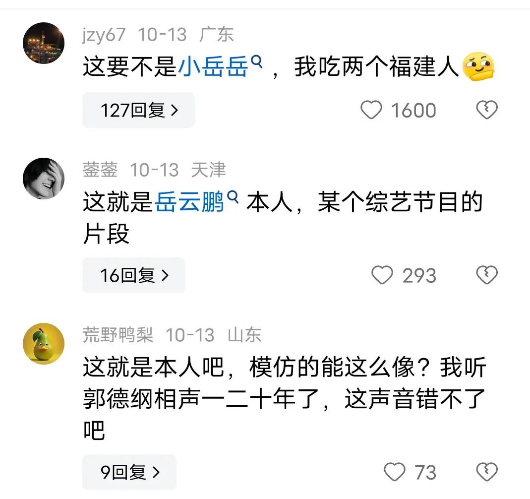 当然更多的网友认为这是岳云鹏模仿秀,只是长得像而已。不过,仔细看简直和岳云鹏真假难辨,甚至连声音都分毫不差。有人猜测是不是岳云鹏被德云社开除了?