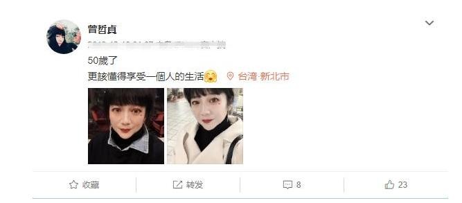 回过头来,婚姻失败但人生一直继续的曾哲贞,看似熬过了人生的灰暗。女儿儿子都长大成人,晒出的照片中也看不出曾哲贞已有52岁。