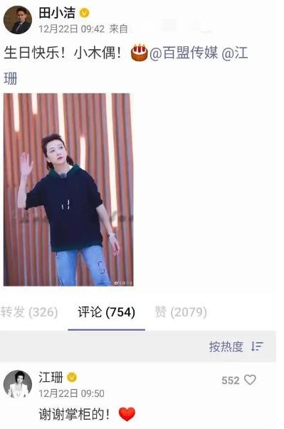 田小洁会在网络上大大方方为江珊庆生。