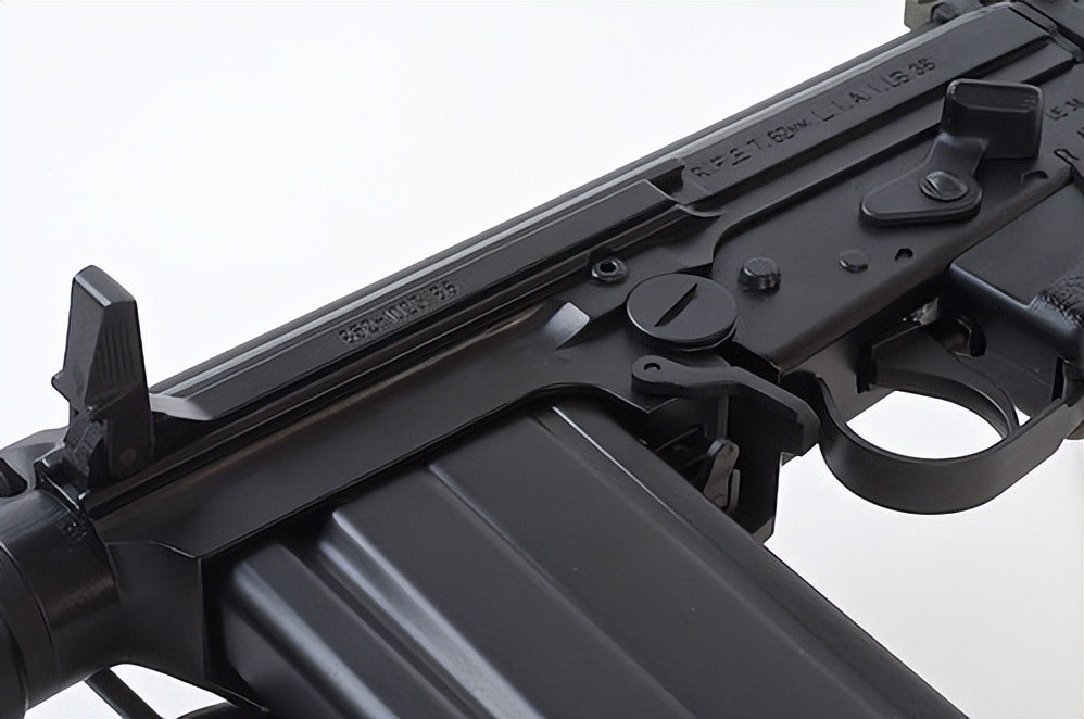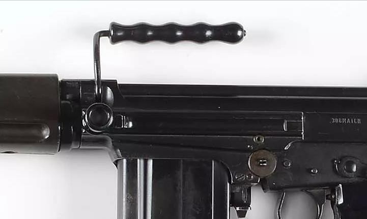 英联邦国家大多都使用的这一版,跟公制版的主要区别就是阉割了全自动功能,只能单发射击,说实话这个7.62×51毫米的弹确实也不太好压。还有就是拉机柄设为了折叠式,公制版的基本上都是固定的圆柱形