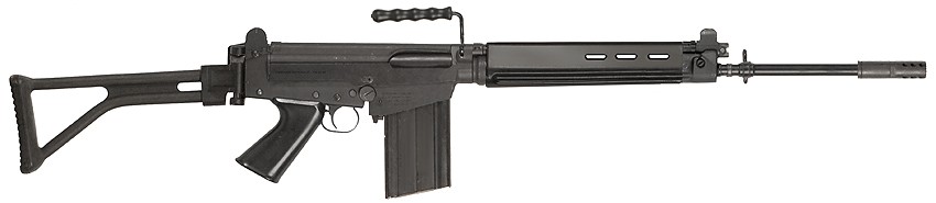 FAL在各国也是生根发芽,慢慢的也有了折叠枪托的伞兵型,以及各种衍生型。游戏中出现过一种SA58的步枪,其实呢也是FAL