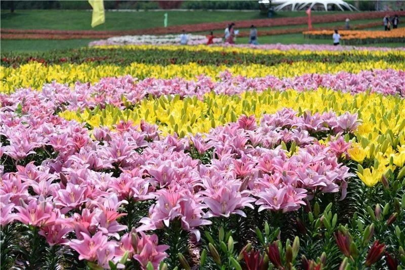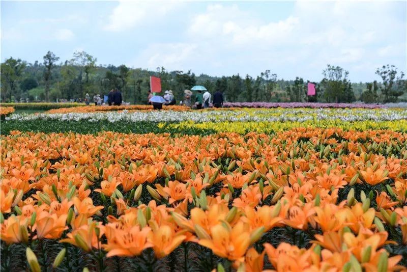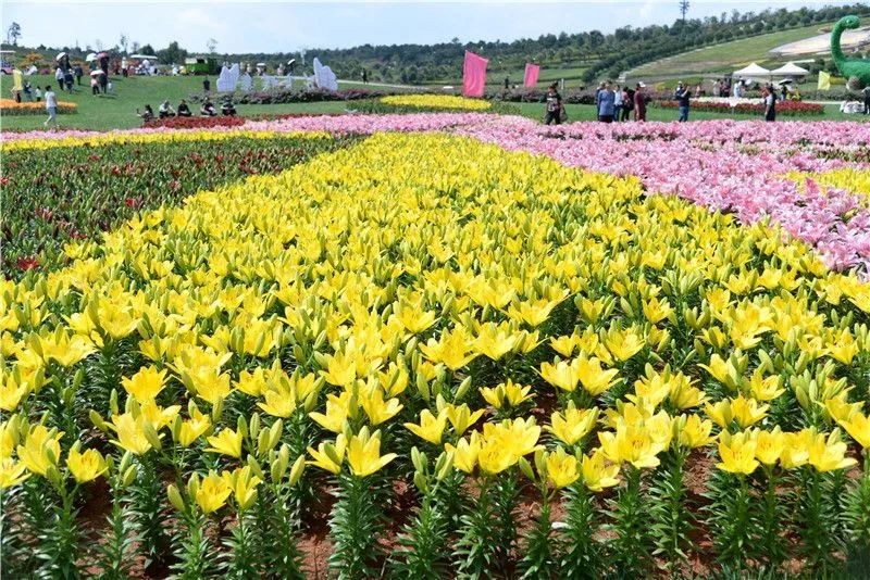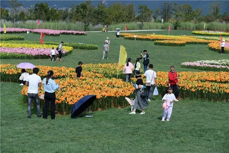 今年国庆期间,弥勒太平湖森林小镇以香水百合为基础,推出了“花飞蝶舞”系列百合花展,吸引了大量的游客前来打卡。