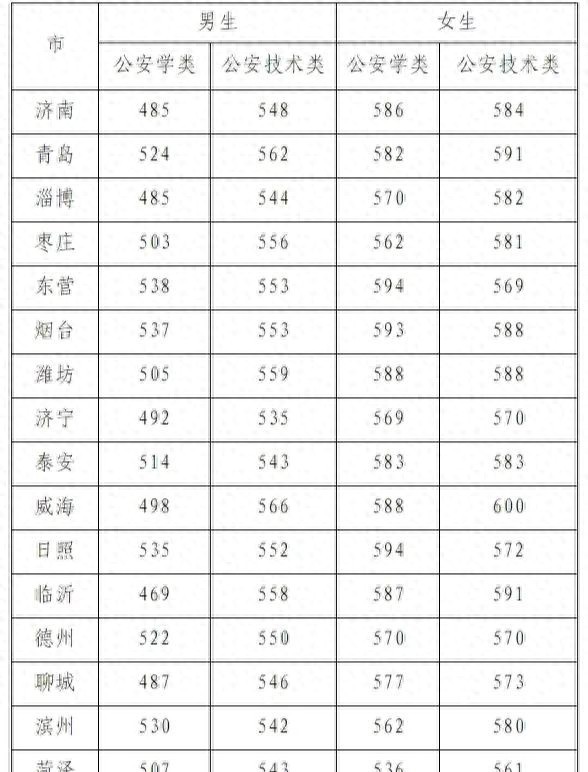 2022年山东省的本科控制线是437分,接下来让我们看看山东警察学院在各地市的最低录取分数线情况吧: