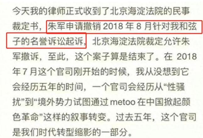 接下来的剧情就更精彩了。朱军大叔可不是好欺负的主,他直接把弦子告上了法庭,说人家诽谤。弦子也不甘示弱,立马反告朱军性骚扰。这一来二去,两个人就开启了一场旷日持久的法律战。