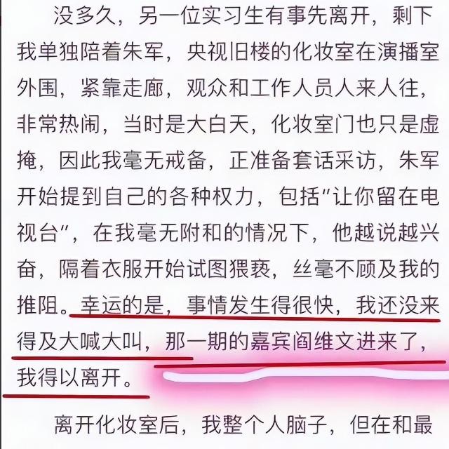弦子这姑娘也是个厉害角色,她可不是随随便便就开炮的主。她发表了一篇长文,把整个事情的经过描述得可谓是绘声绘色。按照她的说法,朱军大叔在化妆间里对她动手动脚,简直是把人家姑娘吓坏了!这篇文章一发出来,立马引起了轩然大波,网友们都炸锅了!