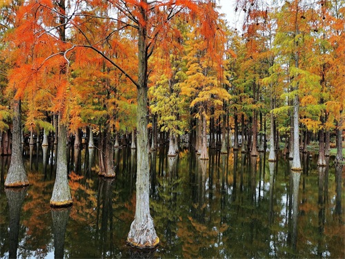 四、青西郊野公园,位于青浦区大莲湖畔,是上海唯一一个以湿地为特色的郊野公园,2016年10月开园。园中最出彩的景色,当数60多亩水上森林,形成上海地区独有景观,深秋时,更是金黄一片,非常漂亮。7、8月份连片的荷花盛开也是公园一景。交通信息:地铁17号线到朱家角站下,换乘青浦28路到练西公路西宋路站下,步行350米即达。