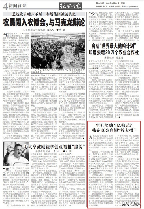 韩国政府也在讨论通过税收优惠等措施,鼓励企业向员工提供生育奖励。