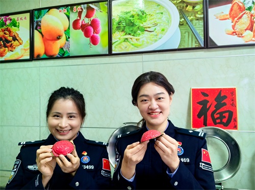 福建莆田:红团,国门印象“中国红”——莆田移民管理警察映照“红团”年味