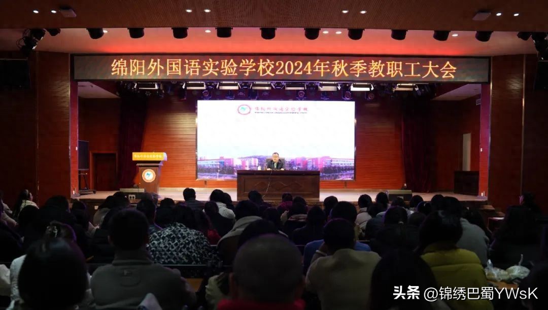 11月25日下午,绵阳外国语实验学校在学术厅组织召开2024年秋季教职工大会。此次大会是学校新领导到任后的首次教职工大会,绵阳外实新任党委书记赵前程同志在会上作了重要讲话。