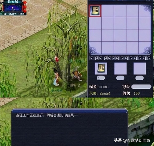 首先是在长安牌中仙旁边设立了一个“外挂举报官”,可以让玩家去举报开挂的玩家!一旦成功就有奖励;其次,直接发放“举报符”!也就是上图这种右键选定对方使用,然后就会给这个人出弹窗!有的是让玩家选择指定的NPC,有的是选择面对自己的NPC,据说还有让做数学题的,就跟现在押镖给出的题目有点类似!如果处于跑镖、跑商、钓鱼打牌、花香香等玩法的玩家在一定时间内没有给出应答,那么就会强行扣除对手身上15万梦幻币给试探人!
