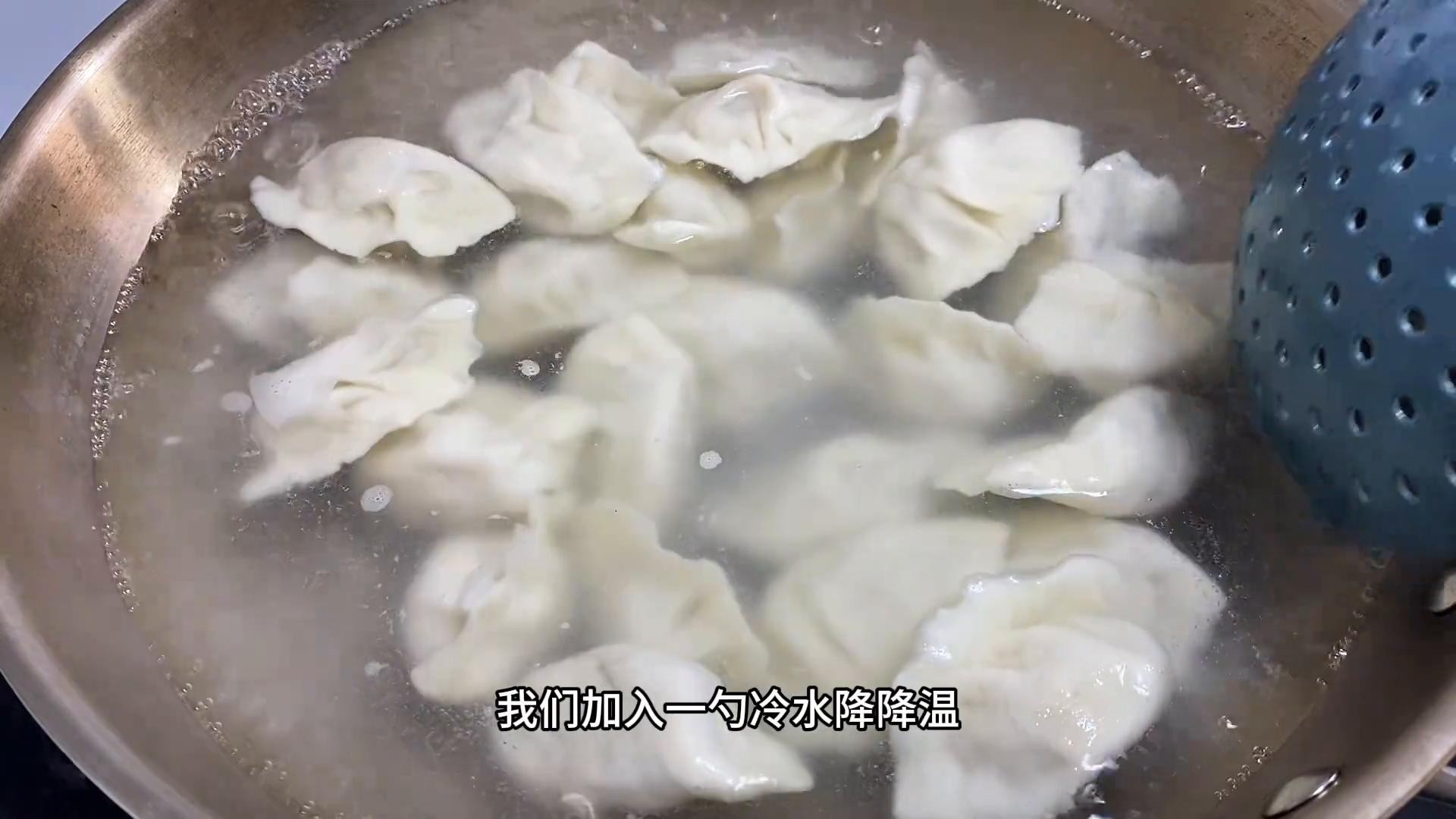 ·等锅再次烧开的时候,再加入少许冷水,然后继续煮开,反复重复三次,这个时候饺子基本上已经快熟了。