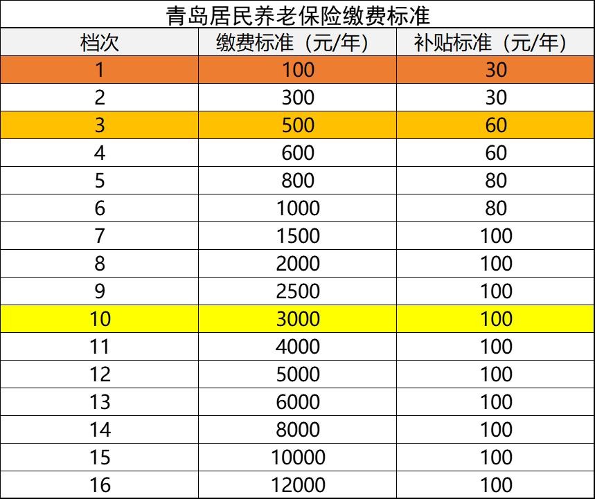 下面以青岛为例,为大家简单测算一下,每年交100元和每年交500元,养老金相差多少!