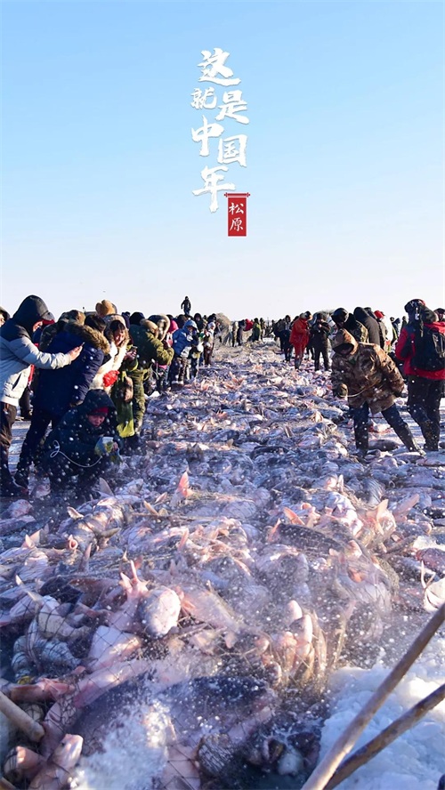 摄影内容 / 2018年吉林查干湖冬捕现场,此次单网捕捞的约30万斤鲜鱼,即将登上过年的餐桌