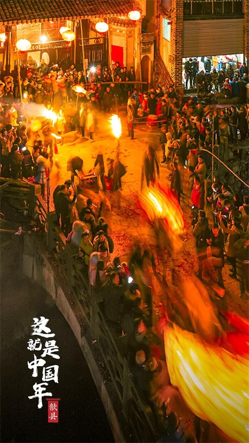 摄影内容 / 2020年元宵,安徽歙县汪氏宗祠之前,村民们戏耍“鱼灯”,欢庆佳节