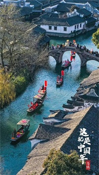 摄影内容 / 2020年跨年前一天,一条条披红带彩的乌篷船上,载着新鲜采摘的瓜果蔬菜、沿河叫卖,是为乌镇景区水上年市