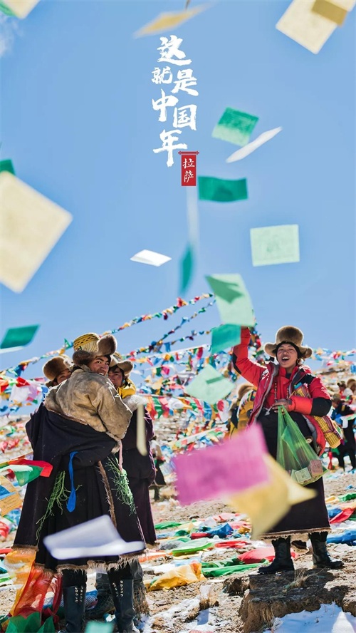 摄影内容 / 2018年的藏历初一,在拉萨的山丘之上,人们兴高采烈地将写有经文的彩纸抛洒向天空,敬祝山神,此举俗称“撒隆达”,是藏民开启新年的重要仪式之一