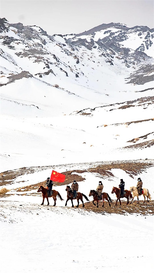 (新疆的边防部队在春节时期依然在巡逻雪山,图片源自@人民视觉)