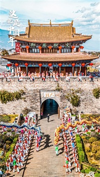 摄影内容 / 2020年1月3日,白族人民在云南大理古城的南门,敲鼓舞龙、欢度新年