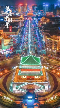 摄影内容 / 2019年2月3日,迎新春的花灯、红灯笼早已挂满树梢,点缀钟鼓楼,将西安装扮成一片火树银花的灯光海洋