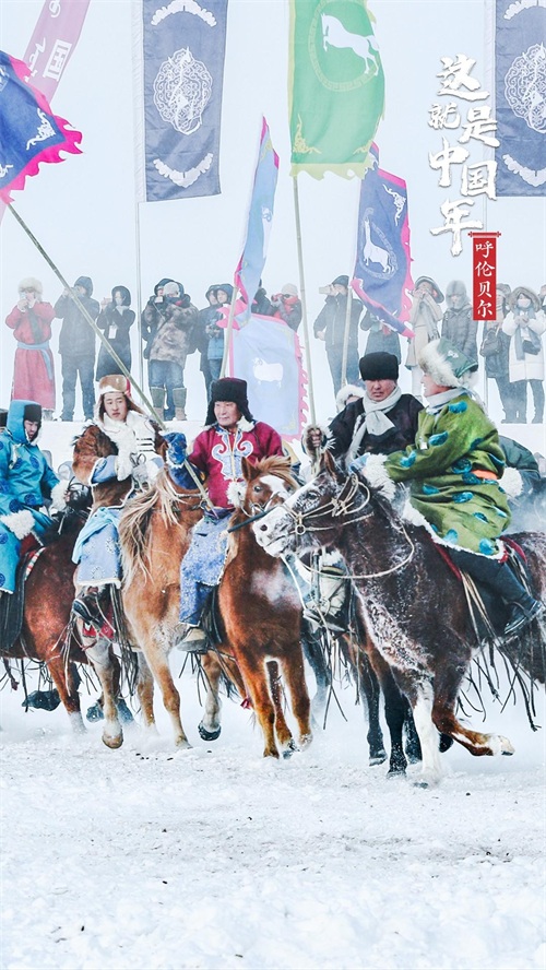 摄影内容 / 2016年冰雪那达慕大会上,冰天雪地中驰骋的马队掀起如火的热情,这是蒙古族过年的传统之一