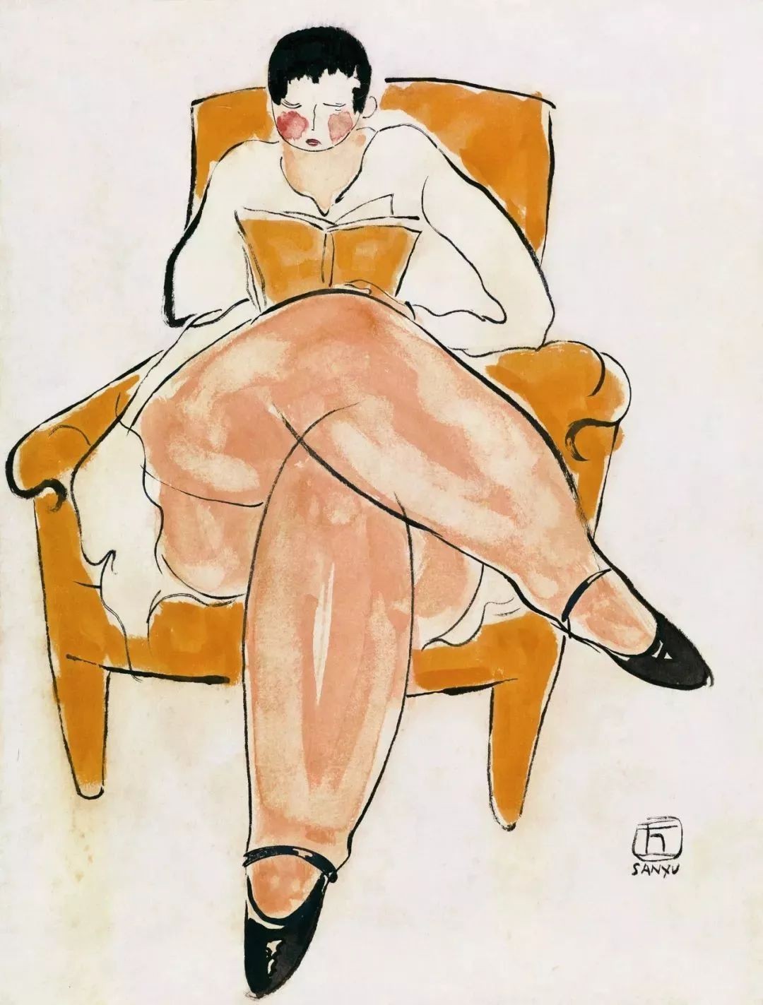 常玉画中每个裸体都有鲜明的特点,他更擅长背式女人的创作,不同角度的背面展示,侧位、坐位、躺位各种姿态,青丝发髻中的转头,体态含羞中带着怒气,细品后给人一种意犹未尽的感受,画中颇多内容仿佛诉说着常玉“不可向人语,独自暗伤神”的内心独白。