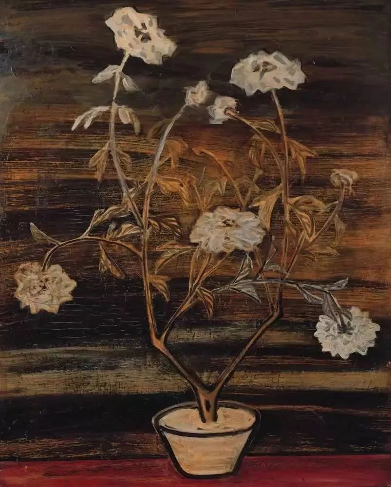 中晚年的常玉除了裸体画作,还出了不少静物和动物的作品,静物作品中的花朵在淡漠的背景下孤独无力的开放,即便在恶劣单一的环境下也要强撑绽放,没有过多的树叶衬托,无依无靠中尽显孤单寂寥的凄凉感。