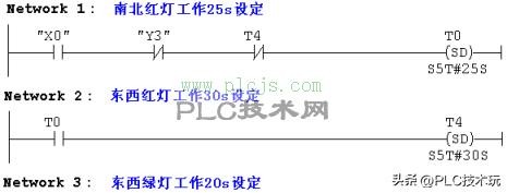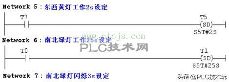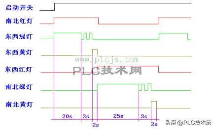 (3)南北红灯亮能持续 25 秒。在南北红灯亮的时候,东西绿灯也亮着,能持续 20 秒。到 20 秒的时候,东西绿灯就一闪一闪的,闪 3 秒就灭了,这时候,东西黄灯亮了,能持续 2 秒。到 2 秒的时候,东西黄灯灭了,东西红灯亮了。同时呢,南北红灯灭了,南北绿灯亮了。