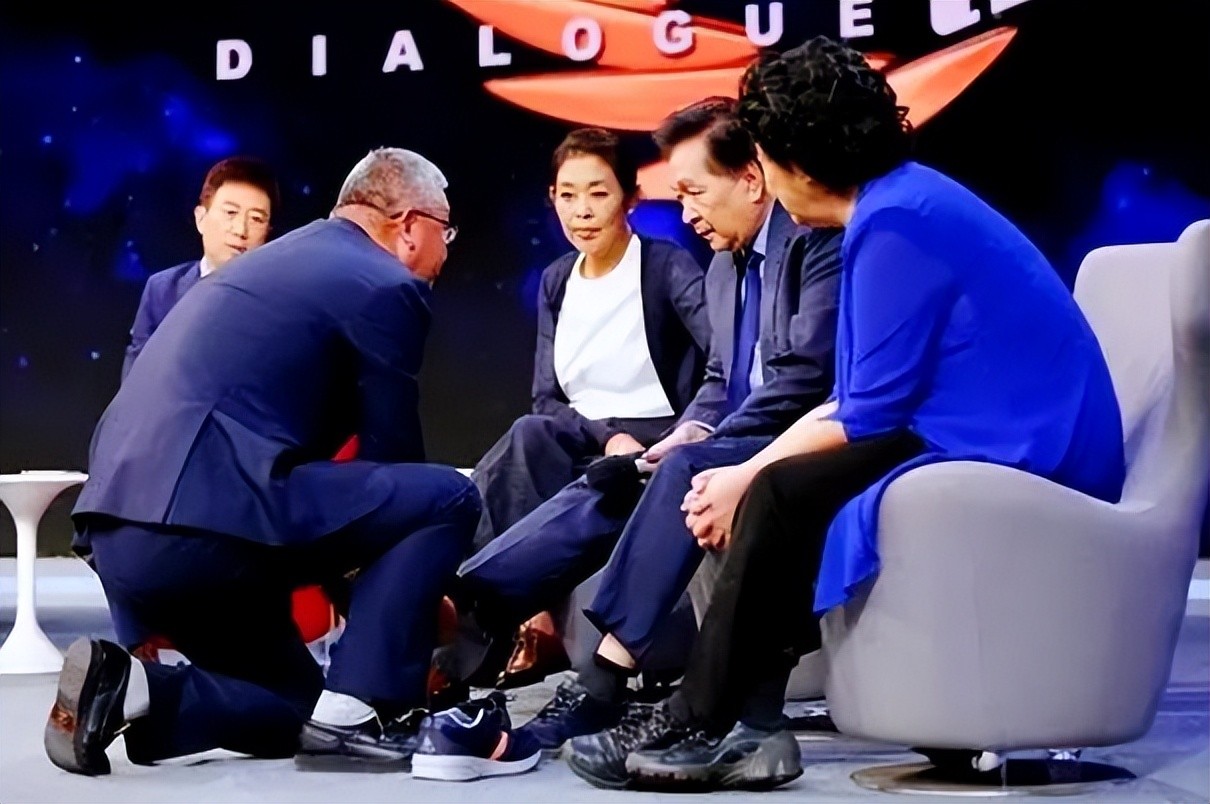 甚至在2019年足力健的创始人在参加央视《对话》栏目的时候,在面对年龄大的嘉宾的时候,足力健的创始人也是这么做的,半跪下来,给嘉宾摸脚试鞋。