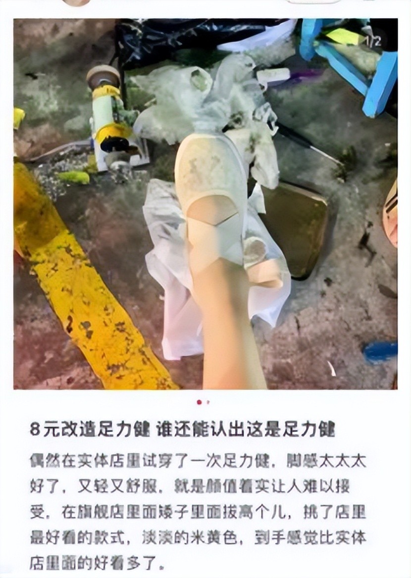再后来就是一些穿汉服的年轻人被那些又贵又难穿的所谓“绣花鞋”给伤透了,也加入了“爆改足力健”的赛道。