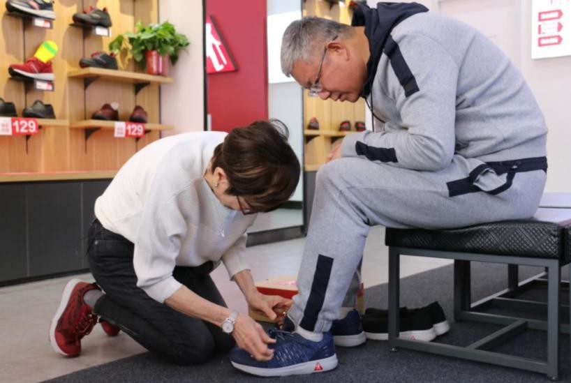 在这样的情况下,足力健要求所有的工作人员,在服务用户的时候,必须嘘寒问暖,用半跪的姿势,给那些老人摸脚试鞋。