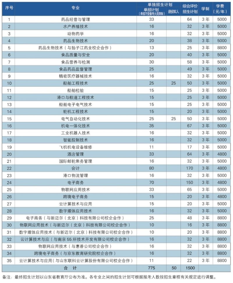 计划翻倍,威海海洋职业学院发布2020年单招、综招招生计划