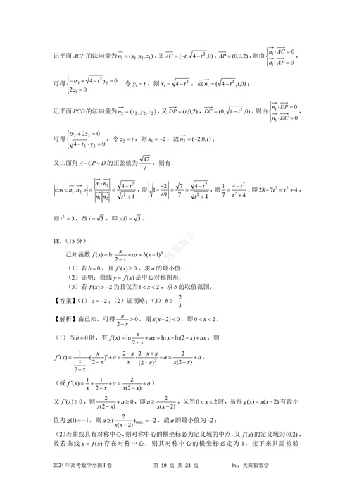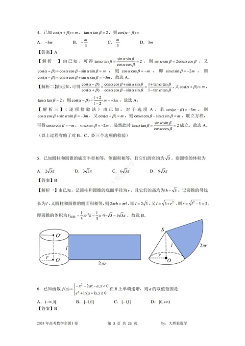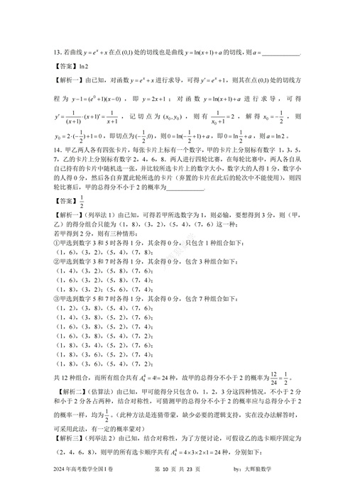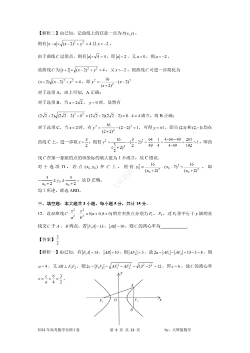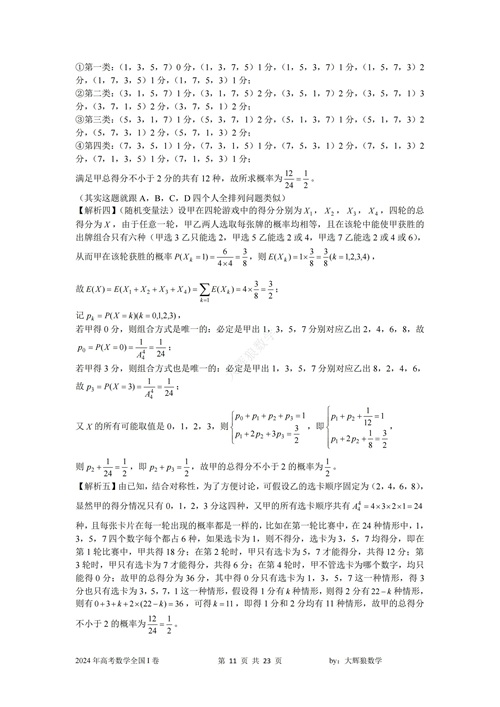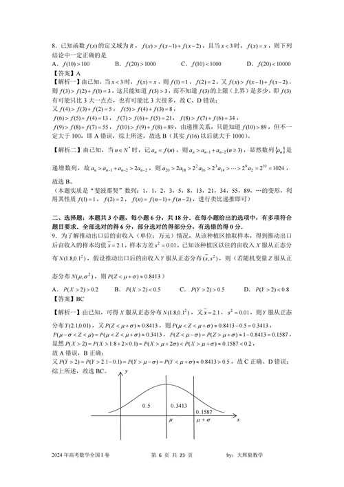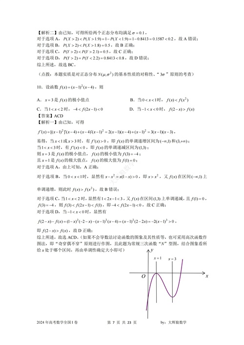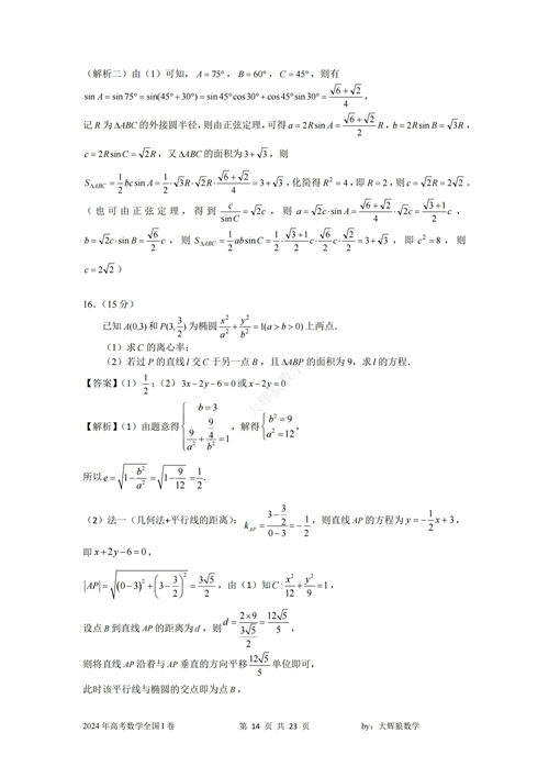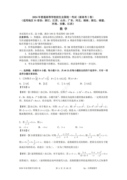 (新课标1卷)2024年全国新高考一卷数学试题真题及答案详细解析: