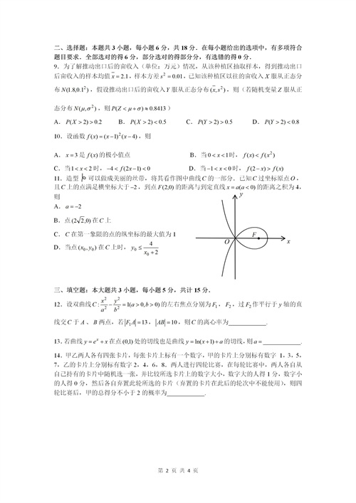 (新课标1卷)2024年全国新高考一卷数学试题真题: