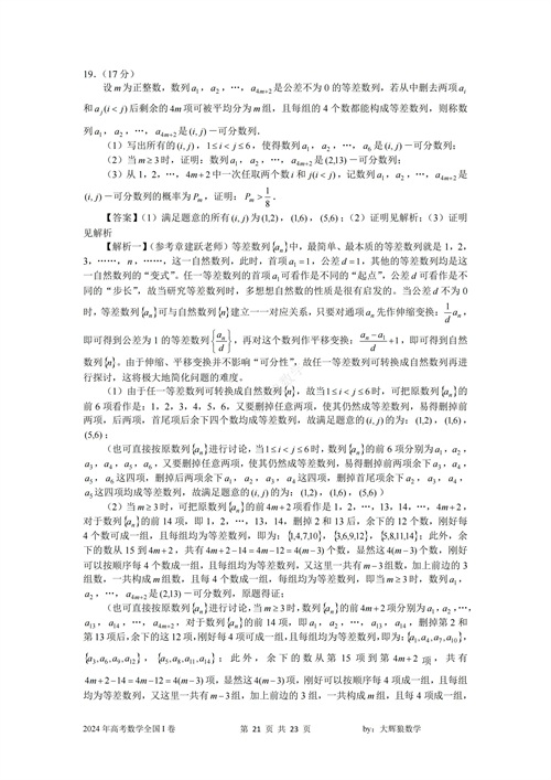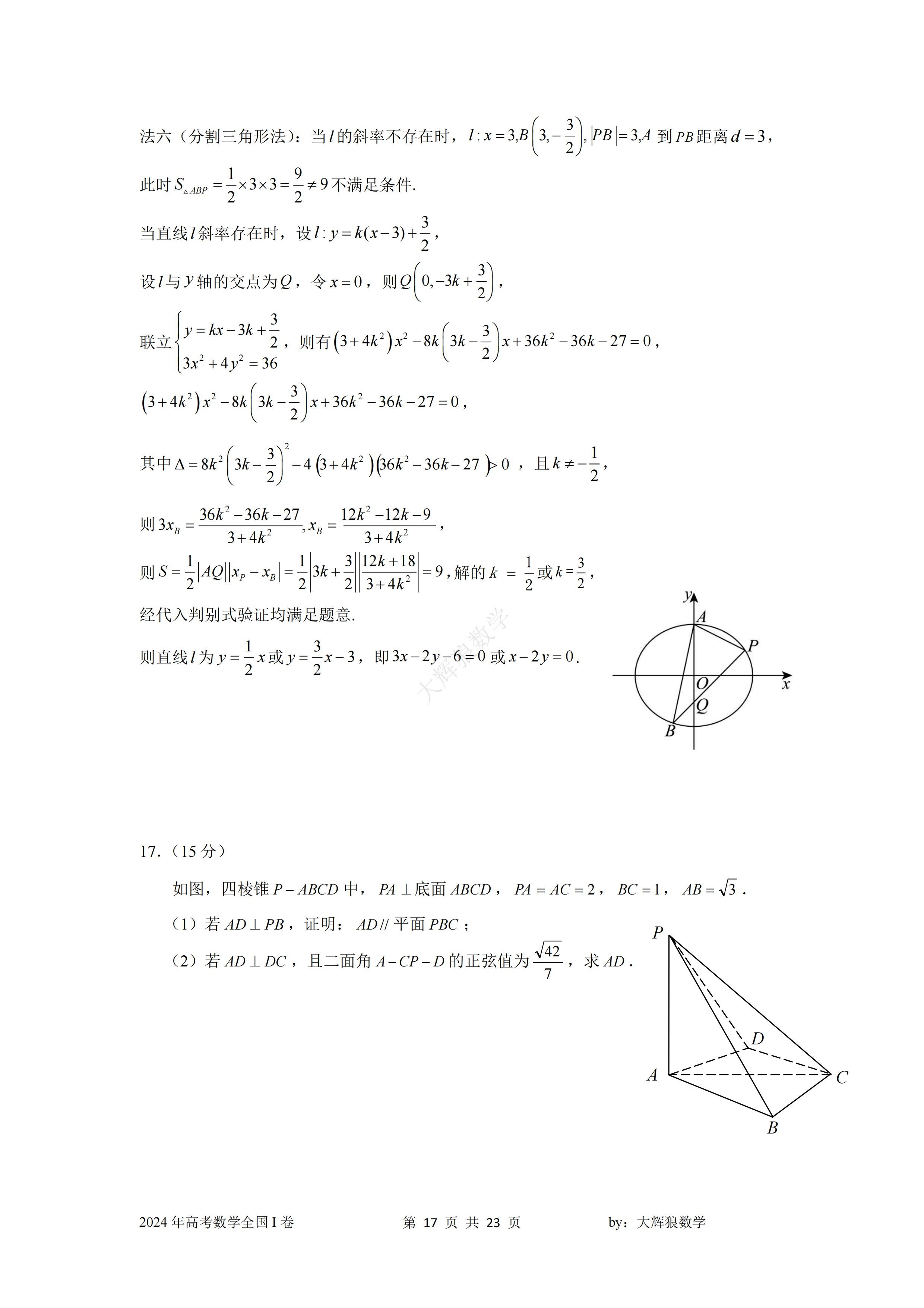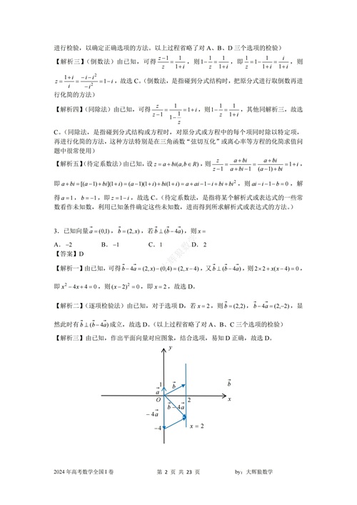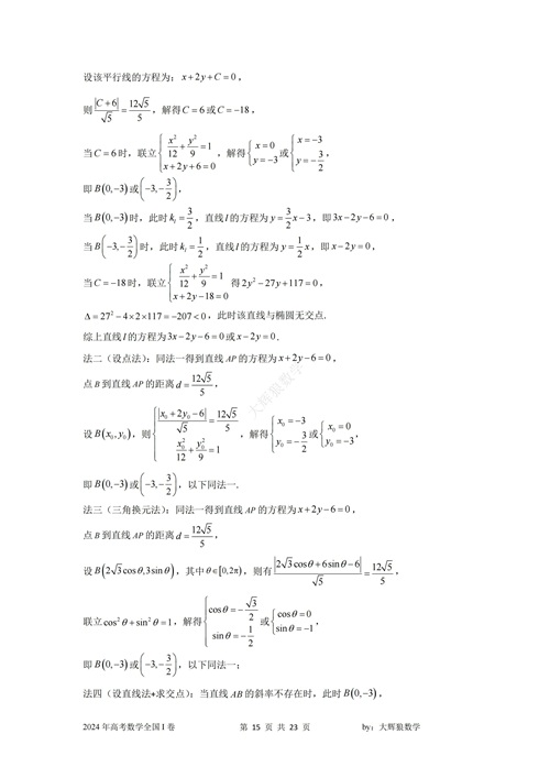 (新课标1卷)2024年全国新高考一卷数学试题真题及答案详细解析(附一题多解)