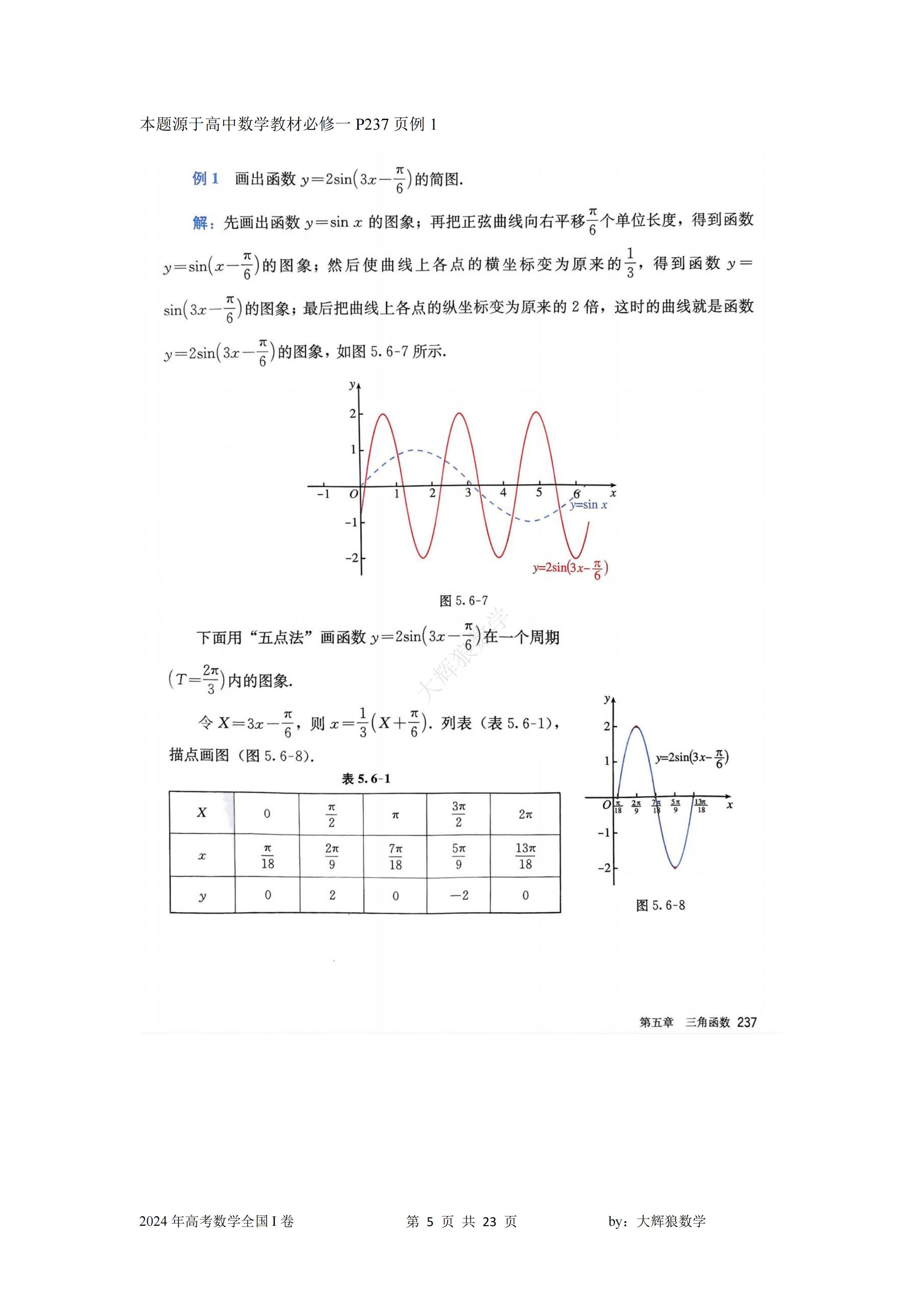 第7题考查了正弦函数与正弦型函数图象交点个数问题,题目源于高中数学教材必修一P237页的例1,这也再次印证了高考备考应“回归教材”;