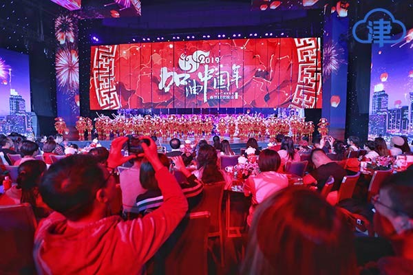 2019年天津广播电视台春节联欢晚会,以“加油中国年”作为春晚新主题,与“家有中国年”互为交融,聚焦当下津城百姓的幸福生活,展望未来城市奏响的时代篇章,生动展示出改革开放四十年以来天津发生的历史性变革。整场晚会的舞美设计以“家”的故事,展开视觉讲述。舞台两侧的环绕式延伸,巧妙的把“家”的观念放大。而相声表演艺术家刘俊杰、影视演员薛佳凝等人组成的临时家庭“锦鲤之家”,更是成为了千千万万家庭的代表,陪着您一起笑看春晚。