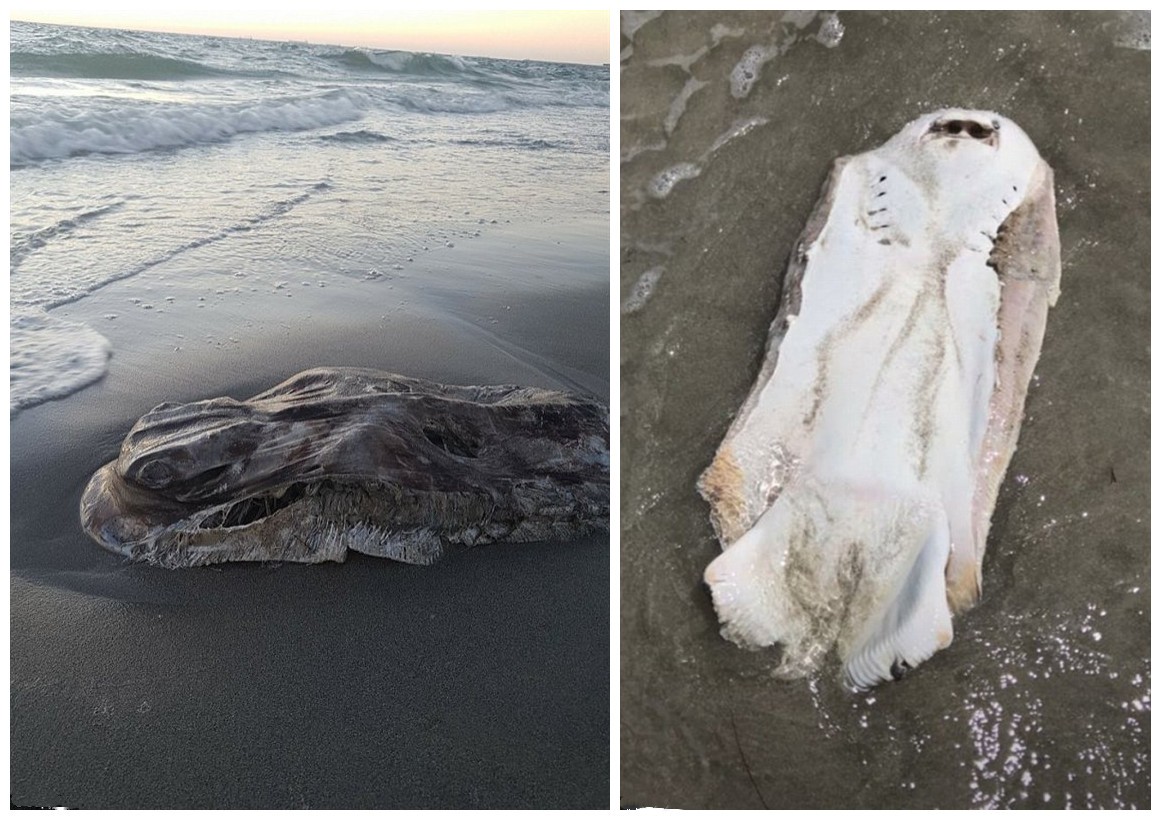 2017年,澳洲海滩发现了一种看似像条鱼的“白色不明生物”,被发现的时候这个生物已经死了,从外形上看,有点像鲼类的一种。